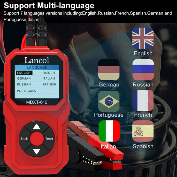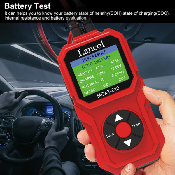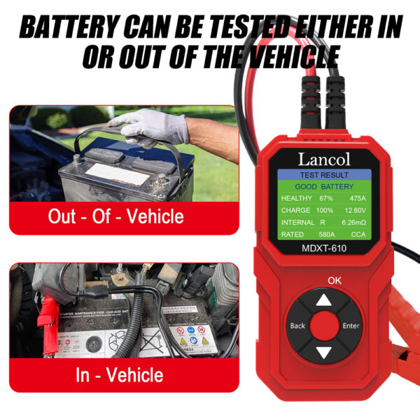12V Car & Motorcycle Battery Test battery tester is our newest version with color LCD Display. And it has a feature of review the latest 20 groups data. With the world’s most advanced conductance testing technology, it can easily quickly and accurately measure the actual cold cranking amps capability of the vehicle starting battery healthy state of the battery, which can achieve quick vehicle repair.