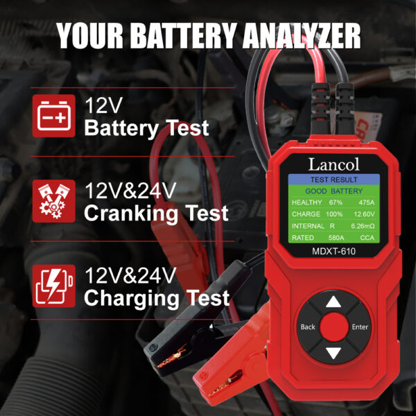 - 12V Lead-acid starter battery Battery & electrical system analyzer